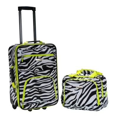 Rockland Fashion Softside Upright Luggage Set, Lime Zebra, 2 Piece Set (14/19),