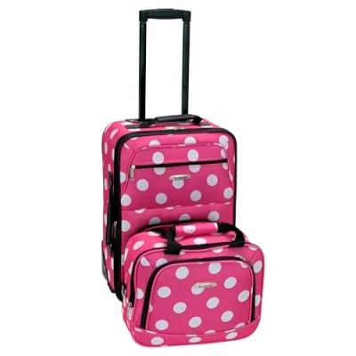 Rockland Fashion Softside Upright Luggage Set, Pink Dots,One Size