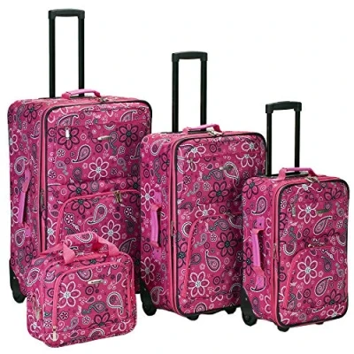 Rockland Impulse 4 Piece Softside Upright Luggage Set, Pink Bandana, (14/19/24/28)