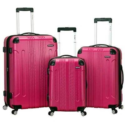 Rockland London Hardside Spinner Wheel Luggage, Magenta, 3 Piece Set (20/24/28), Hard Case with Swivel