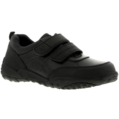 KIDS SCHOOL SHOES: These boys shoes are perfect for your son to wear at school. The black shoes have a casual appearance. TWIN STRAP TOUCH FASTENING: With twin strap touch fastening and a pull tab, the boys trainers for school are quick & easy to fasten. UNMATCHED COMFORT: Designed with your child's comfort in mind, these black leather school shoes boast a cushioned insole that provides exceptional support and comfort, as well as a padded textile collar for enhanced comfort. DURABLE BOY SCHOOL SHOES: Manufactured from PU upper with textile lining, the long-lasting nature of the boys black shoes is evident from their appearance. Features a printed PU mudguard and heel counter to improve durability. The TPR sole is sturdy & durable. RANGE OF SIZES: The Rockstorm Blast Boys School Shoes are available in a wide range of sizes to ensure you can find the right fit for your son.