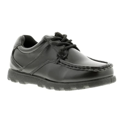 SCHOOL SHOES FOR BOYS: The older boys synthetic lace shoe is a great choice for active boys who spend a lot of time on their feet. LACE FASTENING: The black lace up fastening makes these the perfect pair of older boys school shoes. With a synthetic upper and textile lining, these shoes are built to last. PROTECTION & COMFORT: Perfect for those looking for a comfortable and durable shoe. The raised apron vamp of the black school shoes provides added protection for the toes, while the comfort padded sock and textile lining keeps feet feeling soft and comfortable all day long. DURABLE SCHOOL BOYS SHOES: The primary & secondary school shoes boast a durable sole, which provides excellent traction and durability, making these shoes perfect for everyday wear. RANGE OF SIZES: The Rockstorm Woolley Boys School Shoes are available in a wide range of sizes to ensure you can find the right fit for your son.