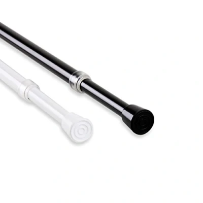 Steel rod with custom Twist tightening system Adjustable from 18- 28 Firm gripping plastic ends hold rod securely in place without damaging mounting surface Installs in seconds, no drills or levels required Diameter: 7/16 inch