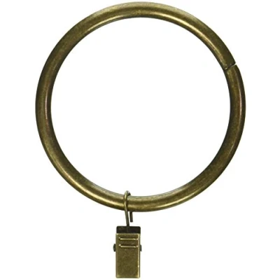 Rod Desyne Curtain Rings with clips are perfect to hook any style of your curtain/ drapery for your room, living room, office and more Ring diameter: 2.5 inch, compatible with 2 inch rod Quantity: Set of 10 Finish: Antique Brass Material: Steel