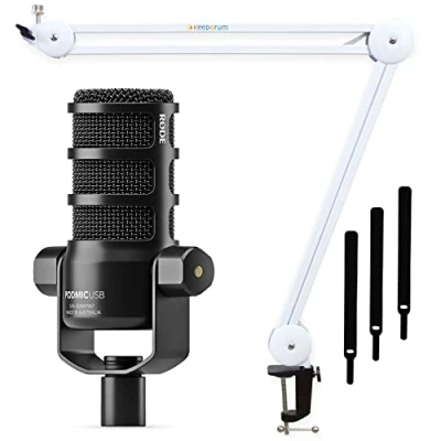 RØDE Rode Podmic USB XLR Speaker Microphone + Keepdrum MS138 Articulated Arm Tripod White
