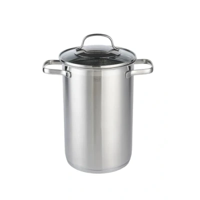 Rösle Elegance asparagus and pasta pot: the high-quality stainless steel pot with its 5 litre capacity is ideal for preparing pasta or vegetables - for all lovers of Italian pasta or asparagus For preparation, you can put the pasta or vegetables directly into the removable stainless steel insert - the fine mesh sieve ensures quick drainage and draining of the liquid With ergonomic stainless steel handles for comfortable handling - the practical, all-round pouring rim serves for drip-free pouring The encapsulated base with aluminium core distributes heat quickly and evenly and stores it over a long period of time - suitable for all types of cookers: ceramic, electric, gas, induction and for the oven - made of high-quality stainless steel, the pasta pot is easy to clean by hand or in the dishwasher Length 30.5 cm, width 17.3 cm, height 24.7 cm, capacity 4.5 l, diameter 16 cm, temperature resistance 180 °C, stainless steel 18/10 high gloss / matt, glass sodalime tempered, smooth, transparent