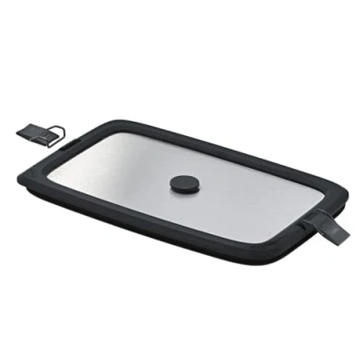The stainless steel lid "FLEXX 2GO 1.5 L square with clips" is part of the modular, flexible storage system from RÖSLE, which impresses with two different shapes, three sizes each and three lid options for use at home and on the go. In combination with the Rösle cans of the FLEXX 2GO system, the lid is perfect for storing food in the fridge and for the leak-proof transport of meals. The lid made of high-quality 18/10 stainless steel with silicone rim is aroma-tight and ensures hygienic storage. A silicone valve in the middle of the lid allows for easy putting on and taking off. For extra secure attachment, additional clips can be attached to the silicone edge if required.