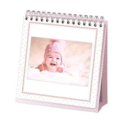 Photo table stand from the "Baby Girl" series With 12 printed sheets measuring 190 x 190 mm Wire-O binding allows pages to be flipped Ideal for giving as a gift and recording memories