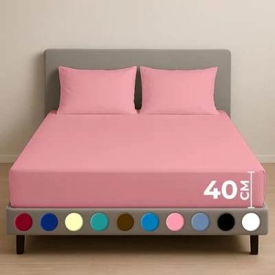 Rohi 16"/40cm Extra Deep Fitted Sheets Small Double Soft & Breathable Anti Allergy Pink Sheet Easy Care Bed (Pink, Double)