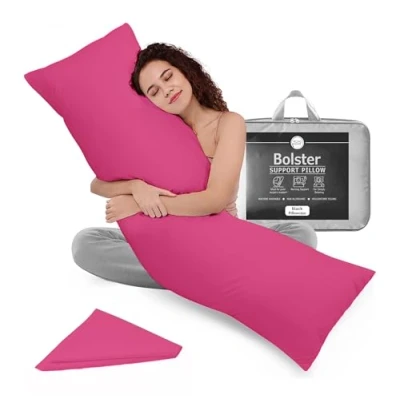 ✔️ 𝐅𝐔𝐋𝐋 𝐁𝐎𝐃𝐘 𝐒𝐔𝐏𝐏𝐎𝐑𝐓– Experience superior support with the Rohi long body pillow. Filled with 100% bounce-back polyester molds to your body for back, hip, knee, and neck support and ideal for side sleepers, pregnancy pillow support, and everyday restful sleep. ✔️ 𝐕𝐄𝐑𝐒𝐀𝐓𝐈𝐋𝐄 𝐏𝐈𝐋𝐋𝐎𝐖 – This long bolster pillow is perfect for pregnancy support, nursing, breastfeeding, post-surgery recovery, use it as a relaxing bolster cushion while reading, watching TV, or lounging in bed. ✔️ 𝐁𝐑𝐄𝐀𝐓𝐇𝐀𝐁𝐋𝐄 & 𝐇𝐘𝐏𝐎𝐀𝐋𝐋𝐄𝐑𝐆𝐄𝐍𝐈𝐂 – The soft-touch polycotton cover of the Rohi full body pillow is breathable, hypoallergenic, gentle on sensitive skin, and safe for babies. ✔️ 𝐏𝐀𝐂𝐊𝐀𝐆𝐄 𝐈𝐍𝐂𝐋𝐔𝐃𝐄 – 1x 3ft bolster pillow (19”x54”) with 1x Hot Pink Polycotton pillowcase cover. Ideal size for Double size bed. ✔️ 𝐄𝐀𝐒𝐘 𝐓𝐎 𝐂𝐋𝐄𝐀𝐍 – The fabric is pre-shrunk and comes with an envelope closure, making it effortless to remove and wash. It's machine washable at 40°C.