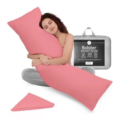 ✔️ 𝐅𝐔𝐋𝐋 𝐁𝐎𝐃𝐘 𝐒𝐔𝐏𝐏𝐎𝐑𝐓 – Experience superior support with the Rohi long body pillow. Filled with 100% bounce-back polyester molds to your body for back, hip, knee, and neck support and ideal for side sleepers, pregnancy pillow support, and everyday restful sleep. ✔️ 𝐕𝐄𝐑𝐒𝐀𝐓𝐈𝐋𝐄 𝐏𝐈𝐋𝐋𝐎𝐖 – This long bolster pillow is perfect for pregnancy support, nursing, breastfeeding, post-surgery recovery, use it as a relaxing bolster cushion while reading, watching TV, or lounging in bed. ✔️ 𝐁𝐑𝐄𝐀𝐓𝐇𝐀𝐁𝐋𝐄 & 𝐇𝐘𝐏𝐎𝐀𝐋𝐋𝐄𝐑𝐆𝐄𝐍𝐈𝐂 – The soft-touch cotton blend cover of the Rohi full body pillow is breathable, hypoallergenic, gentle on sensitive skin, and safe for babies. ✔️ 𝐏𝐀𝐂𝐊𝐀𝐆𝐄 𝐈𝐍𝐂𝐋𝐔𝐃𝐄 – 1x 6ft bolster pillow (19”x72”) with 1x Pink cotton blend pillowcase cover. Ideal size for super king size bed. ✔️ 𝐄𝐀𝐒𝐘 𝐓𝐎 𝐂𝐋𝐄𝐀𝐍 – The fabric is pre-shrunk and comes with an envelope closure, making it effortless to remove and wash. It's machine washable at 40°C.