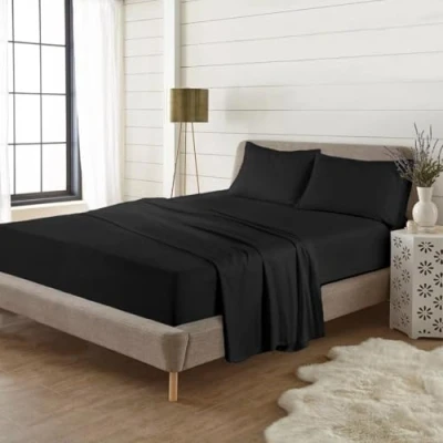 Rohi Black Double fitted sheet 16 (40cm) Extra deep 100% Brushed Cotton Stain and Wrinkle Resistant All around Elastic (Black, 16" Deep)