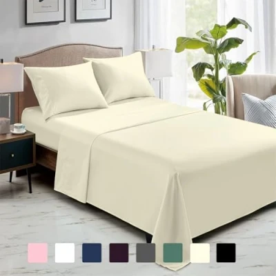Rohi Cream King Size Flat Sheet Microfibre Ultra Soft, Durable, and Hypoallergenic Sheets for Standard Oversized Mattress Bed (Cream 255 x 270cm)