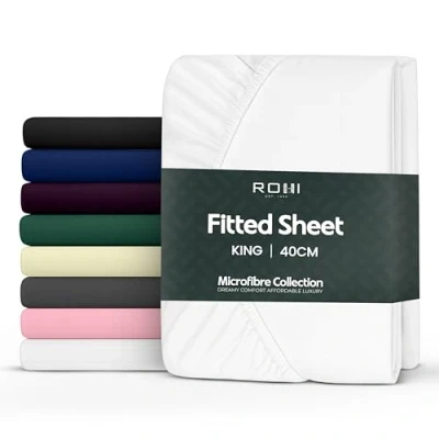 Rohi King Size Fitted Sheet 100% Microfibre 16'' (40cm) Extra Deep with All Around Elastic Ultra Soft, Hypoallergenic & Durable Bed Bottom (White 150 x 200cm)