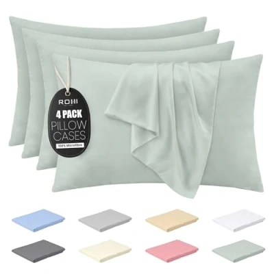 Rohi Microfibre Duck Egg Pillowcases 4 Pack Ultra Soft & Smooth Pillow Covers with Envelope Closure Fade Resistant Breathable Cases Standard Size (50x75 cm)