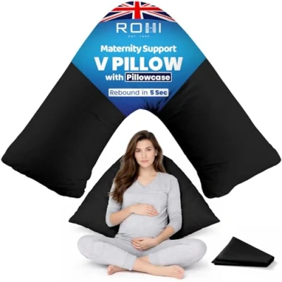 Rohi Orthopaedic V Pillow with Pillowcase Anti Allergy Triangle pillows for Adults, Nursing, Maternity & Pregnancy Extra Hollowfibre Cushioning to Supports Neck, Head Back (Black)