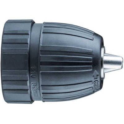 General description This is a plastic keyless drill chuck designed for use with corded and cordless drills. It allows quick and easy bit changes without the need for a key, providing convenience during drilling tasks. The chuck is impact-resistant and suitable for various drilling applications, offering reliable performance with a maximum torque of 60Nm. Technical specifications Maximum torque: 60Nm Power capacity: up to 650 Watts Chuck size: 10mm (3/8 inch) with a 24 TPI (threads per inch) mount Material: Impact-resistant plastic Design features: Radial locking plastic sleeve with retaining ring Additional feature: Through-hole for use with a locking screw Compatibility and accessories Compatible with corded and cordless drills Suitable for drills with or without a spindle stop Includes a retaining ring and a through-hole for locking screw Installation Install the chuck onto the drill's spindle by threading it onto the 3/8 x 24 mount Ensure the chuck is securely tightened before use