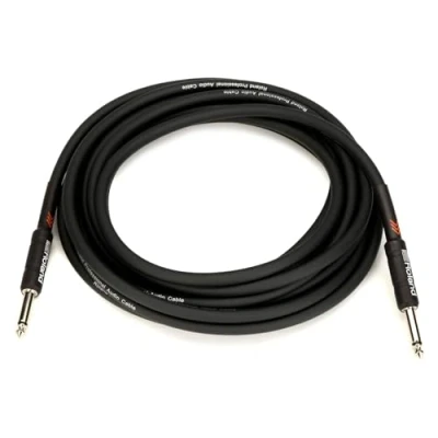Roland RIC-B20 Black Series Instrument Cable. Straight 1/4-inch connectors, 20 ft./6 m length. Roland’s Black Series instrument cables deliver professional performance and exceptional value. Our multi-strand, oxygen-free copper core wire translates the true tones of your instrument, while high-density spiral shielding eliminates unwanted noise. Incorporating high-quality connectors and a low-capacitance design, these rugged cables give you pure, natural, and accurate sound everywhere you play. Suitable for all electronic instruments, including: keyboards, synthesizers, drums, V-Drums, DJ equipment, etc. Heavy-duty 1/4-inch connectors. High-density spiral copper shielding. Low-capacitance design ensures full frequency reproduction and maximum dynamic response. Soft-feel ultra-flex jacket provides durability and flexibility. Lifetime guarantee.