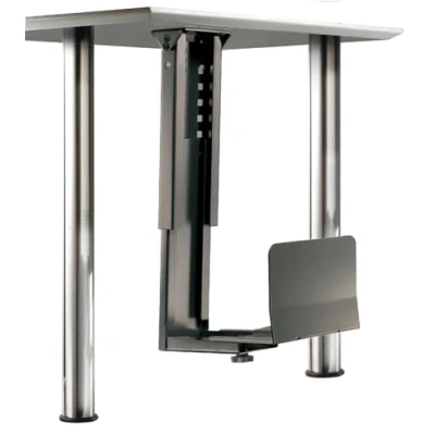 Optimal solution ✓ The metal holder in black, stows the computer stably and flexibly underneath the tabletop. The carrying capacity of the holder is 30 Kg. Convenient accessories ✓ The PC holder under the desk facilitates the cleaning underneath, as well as the connection of cables. The undercarriage is also adjustable. Simples concept ✓ The ROLINE table base is designed in an L-shape and thus very space-saving. An illustrated instruction is attached to the holder. ndividually adjustable ✓ The side parts, as well as the base of the table support are adjustable in height and width. This makes the mounting arm suitable for many PCs. Simple sub-table mounting ✓ A hex wrench and four screws are included to secure the bracket to the mounting plate.