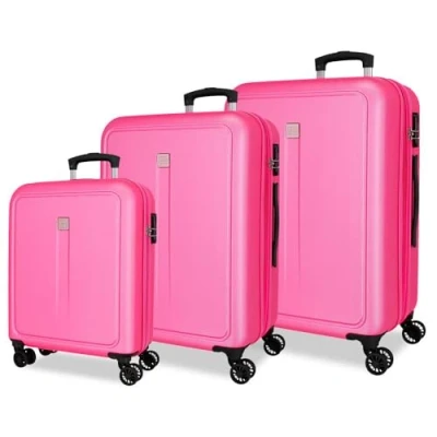 ROLL ROAD Cambodia Luggage Set Pink 55/65/75 cm Rigid 11.1 kg Combination Lock Side ABS 190L Hand Luggage, Pink, One Size, Suitcase