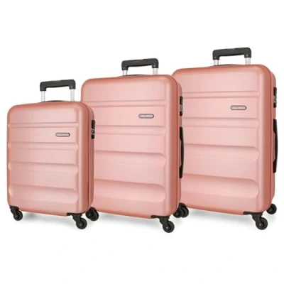 ROLL ROAD Flex Suitcase Set Nude 55/65/75 cm Hard ABS Side Combination Lock 182L 9.5kg 4 Wheels, Pink, One Size,