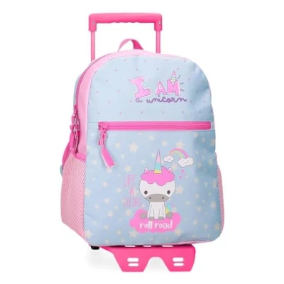 ROLL ROAD I Am a Unicorn School Backpack with Trolley Blue 27x33x11cm Polyester 9.8L, Blue,