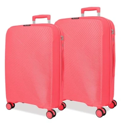 Suitcase set consisting of a medium suitcase of 42.5 x 64 x 24 cm of 57L and 3.1 kg, and a large suitcase of 48.5 x 75 x 28 cm of 88.8L and 4 kg. Made of polypropylene, a rigid and lightweight material. Practical interior with a compartment with a zip pocket on one side and elastic straps on the other. Four multi-directional swivel dual wheels for comfortable riding, smooth rolling and effortless maneuverability. Medium and large suitcase can be extended up to 5 cm longer to expand its capacity. Save space by storing one inside the other.