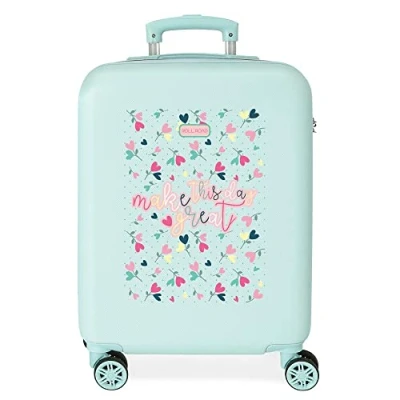 15" x 21" x 20" cabin suitcase (wheels and handle included). It has a capacity of 35L and weighs 2.5 kg. Made of ABS, a durable and lightweight material. One zip compartment and one pocket on one side and elastic fastening on the other. Four dual multi-directional swivel wheels for comfortable riding, smooth rolling and effortless maneuverability. Side combination closure for safe travel and protect your personal effects.