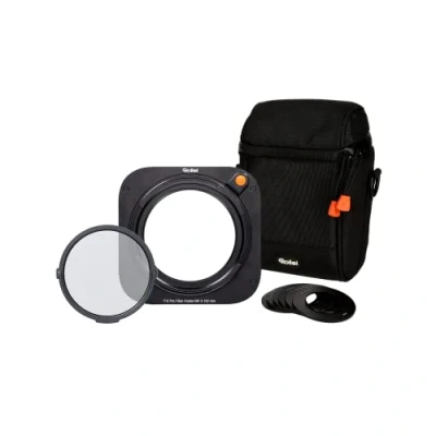 Modular 100 mm rectangular filter holder system made of aviation aluminium, with easy-lock system for quick change of filters or for use of autofocus with strong ND filters. Modular matte black (for reducing reflections) 100 mm filter system for 2 100 x 100 mm filters or 100 x 150 mm with 2 mm thickness. With the optional MK 3 additional rail expandable to 3 rectangular filters. Polarising filter (CPL filter) made of high-quality Gorilla glass with ultra-fine, F:X Pro coating developed in Germany. Even with 150 MP high-end cameras, a guarantee for razor-sharp images and 99.5 % reflection freedom. Complete flexibility thanks to 360° rotating holder, and absolutely no vignetting, even with 3 inserted filters and 16 mm wide angle lenses. Suitable for all lenses with a filter thread between 52 mm and 82 mm. Box contents: 1 x F:X Pro filter holder MK 3, 1 x magnetic CPL filter, 7 x adapter rings (52.55.58.62.57.72.77 and 82mm), 1 x filter bag with inner register, 1 x index label, 1 x carrying strap for the filter bag.