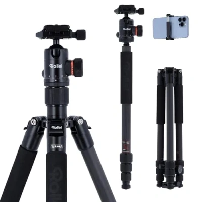 Rollei Tripod C5i Carbon with 3D Ball Head and redating central column for macro photography Arca Swiss compatible convertible to Monopod Black