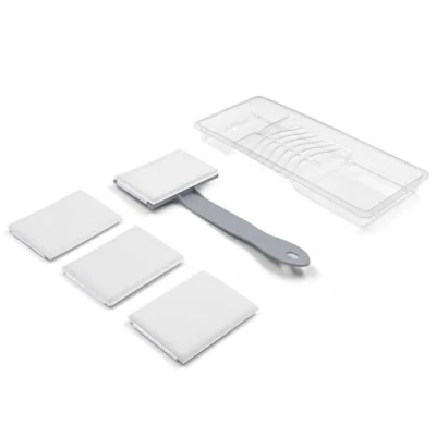 REACH BEHIND TIGHT SPACES: Perfect for painting tight and hidden spaces such as behind toilets, appliances, radiators, cabinets, and narrow gaps where rollers and brushes can’t reach COMPLETE 5PC PAINT PAD SET: Includes 1 thin plastic paint tray, 1 reach-behind paint pad handle, and 3 replaceable nylon felt pads. Everything you need for efficient touch-ups and small painting jobs REMOVABLE AND WASHABLE PAINT PAD: The pad clips onto the handle for easy removal, allowing quick cleaning or replacement LIGHTWEIGHT EASY TO USE: The reach-behind handle design offers better control and less strain during use. Pads are easy to install and replace, making the set ideal for repeated projects FOR LATEX PAINT ONLY: Specifically designed for latex-based paints. Great for home improvement, renovation, and touch-up work around the house, Manufacturer: ROLLINGDOG TOOLS