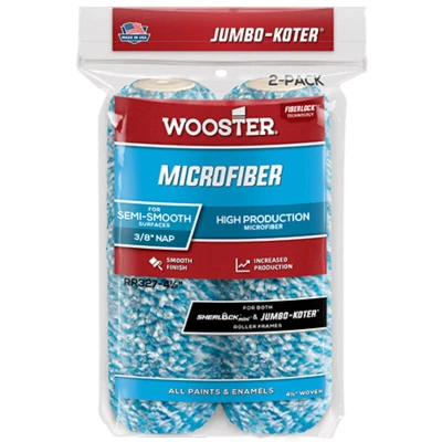 General description Wooster Jumbo Koter Microfiber Mini Roller Sleeves are designed for both professional painters and DIY enthusiasts. With a rich history of over a century, Wooster is a trusted name in the painting industry, known for crafting tools with meticulous attention to detail and the finest materials. These roller sleeves ensure superior performance, delivering precise strokes and smooth finishes. Technical specifications Size: 4.5 inches Nap: 3/8 inch Material: Microfiber Pack: Twin Pack Usage Suitable for solvent and water-based paints and varnishes Ideal for walls, furniture, doors, and trim Provides smooth paint release and great coverage Quick and easy to clean