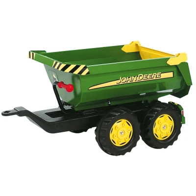 The Ride-On Tractor John Deere Half-Pipe Trailer is the ideal toy for children aged 3 to 10 who love farming adventures. This large, sturdy two-axle trailer adds an authentic touch to playtime, with a generous round-tipper for transporting various materials. Kids can easily use the tipping function via the tipping handle to unload their cargo, and the tiltable tailgate makes the process even smoother.