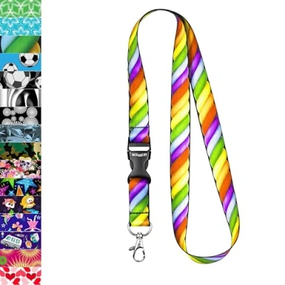 Rolseley Lanyard Neck Strap with Rope Rainbow for id Badge Holder Metal Clip