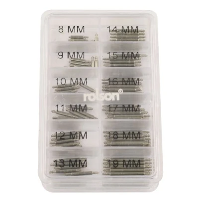 Spring Bar Assortment Clasp spring bars with short tips Single shoulder spring bar for ultra thin clasps Assortment includes five each of twelve of the most popular sizes Sizes 8 - 19mm with 1mm diameter