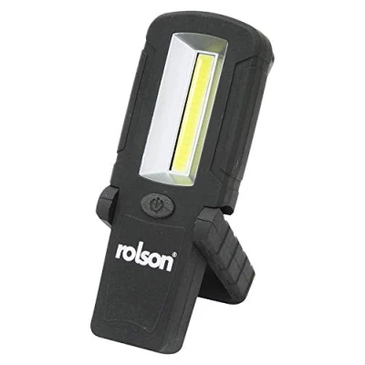 Manufactured from ABS material 3W COB 170 lumens Light mode on/off Magnetic base, swivel hook, pull out stand and belt clip on reverse Supplied with 3AAA batteries, Weight: 0.14 Pounds, Manufacturer: Rolson
