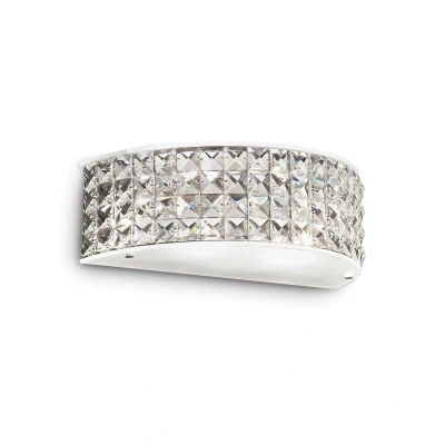 This is a wall light from the dazzling range. Featuring a rounded sandblasted glass sheet base and tens of square cut crystals in the sides. Available in other sizes and styles and supplied with G9 bulbs.