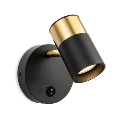 Net LightingA stunning modern black and brushed brass wall spot with an on/off rocker switch on the backplate for convenience. The fully manoeuvrable head gives great control over the desired direction of light.