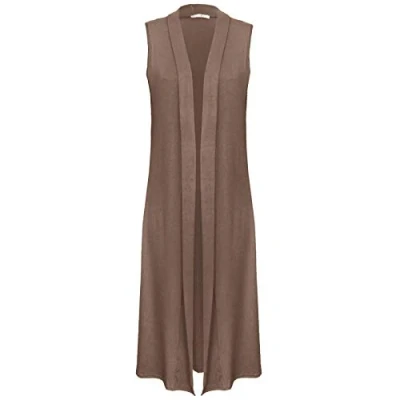 Romaans Womens Ladies Sleeveless Maxi Long Length Boyfriend Cardigan Collared Top Floaty Duster Jacket Coat Blazer Waistcoat (Mocha, ML 12 14)