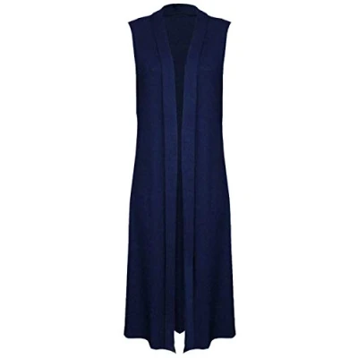 Romaans Womens Ladies Sleeveless Maxi Long Length Boyfriend Cardigan Collared Top Floaty Duster Jacket Coat Blazer Waistcoat (Navy, ML 12 14)
