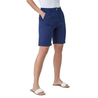 Roman Cotton Blend Chino Shorts for Women UK Ladies Spring Everyday Summer Holiday Side Pockets Soft Belt Loops Comfy Woven Fabric Sunny Daywear Vacation Bottoms Navy Size 20