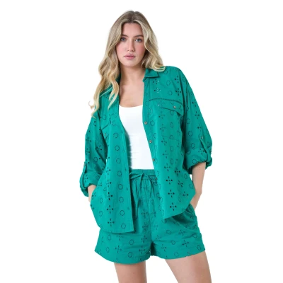 Elevate your Summer wardrobe with this exquisite broderie anglaise shirt. With its intricate lace-like design, this shirt exudes femininity and elegance. The button-through front and V-neckline add a touch of sophistication, while the shirt collar adds a polished finish to your daywear. Crafted from a breezy cotton fabric with a subtle dipped hem, this shirt from our Dusk Collection is a must-have addition to your Spring layers, paired with denim culottes for effortless day dressing. Please click our store link to visit the Roman shop and see our entire range.