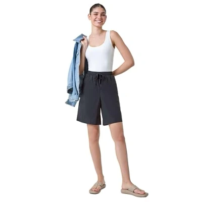 Roman Cotton Tie Detail Pocket Shorts for Women UK Ladies Spring Everyday Summer Holiday Elasticated Waistband Comfy Knee Length Soft Woven Fabric Daywear Vacation Bottoms Black Size 20