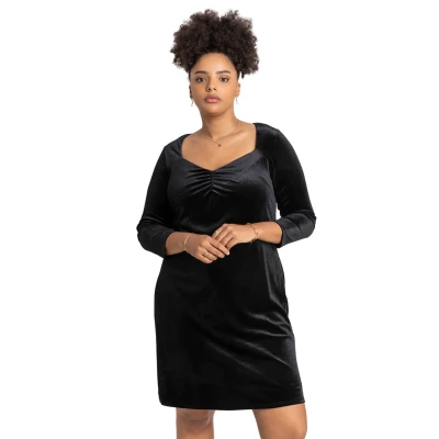 Curve Sweetheart Neck Velvet Dress from Roman. Elegant and always on-trend, opt for this Roman Curve velvet sweetheart neckline dress at your next party function. Fitted to contour the figure and finished with ruching at the bust, this beautiful dress boasts an elegant sweetheart neckline and long sleeves, made to perfection for this party season. Team with a sparkling clutch and your favourite pair of heels for a night to remember.