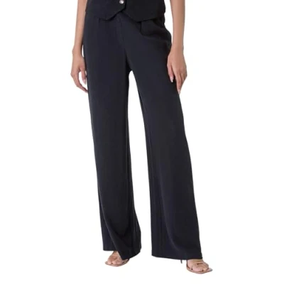 Roman Linen Mix Wide Leg Trousers for Women UK Ladies Spring Everyday Summer Holiday Elasticated Waist Comfy Side Pockets Soft Pleat Detail Bottoms Work Office Pants Black Size 20