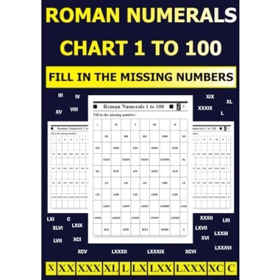 Roman Numerals Chart 1 to 100: Fill in the Missing Numbers: 108 Worksheets.