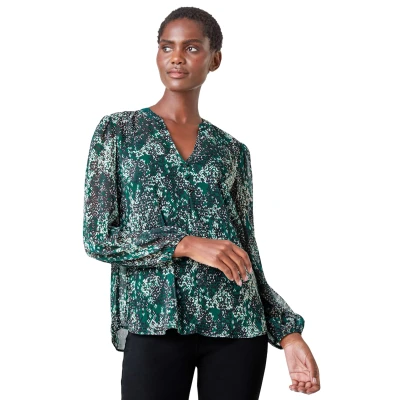 Roman Originals Animal Print Button Front Blouse for Women UK Ladies Everyday Autumn Winter Notch Neckline Comfy Soft Evening Vacation Work Party Night Out Green Size 10