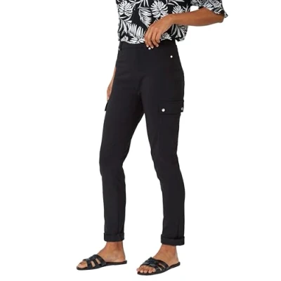 Roman Originals Cargo Trousers for Women UK Ladies Stretch Pants Turn Up High Waist Rise Pull On Leggings Smart Casual Slimming Work Office Fitted Autumn Winter Straight Leg Black Size 18
