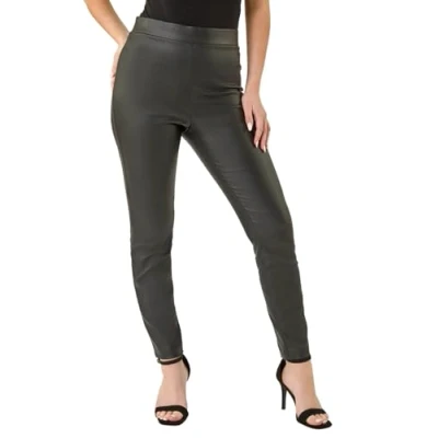 Roman Originals Coated Elastic Waist Bengaline Stretch Trouser for Women UK Ladies PU Mat Legging Jegging Pants High Waisted Pull On Latex Imitation Stretchy Jeans Slimming Petite Black Size 18