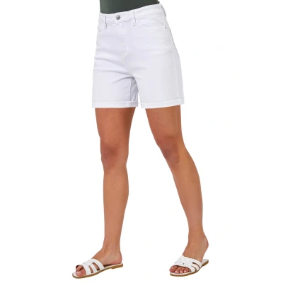 Roman Originals Denim Shorts with Pockets for Women UK Ladies Mom Jeans Boyfriend Boy High Waisted Turned Frayed Hem Stretchy Cotton Casual Slim Skinny Pants Mother Holiday Plain White Size 20